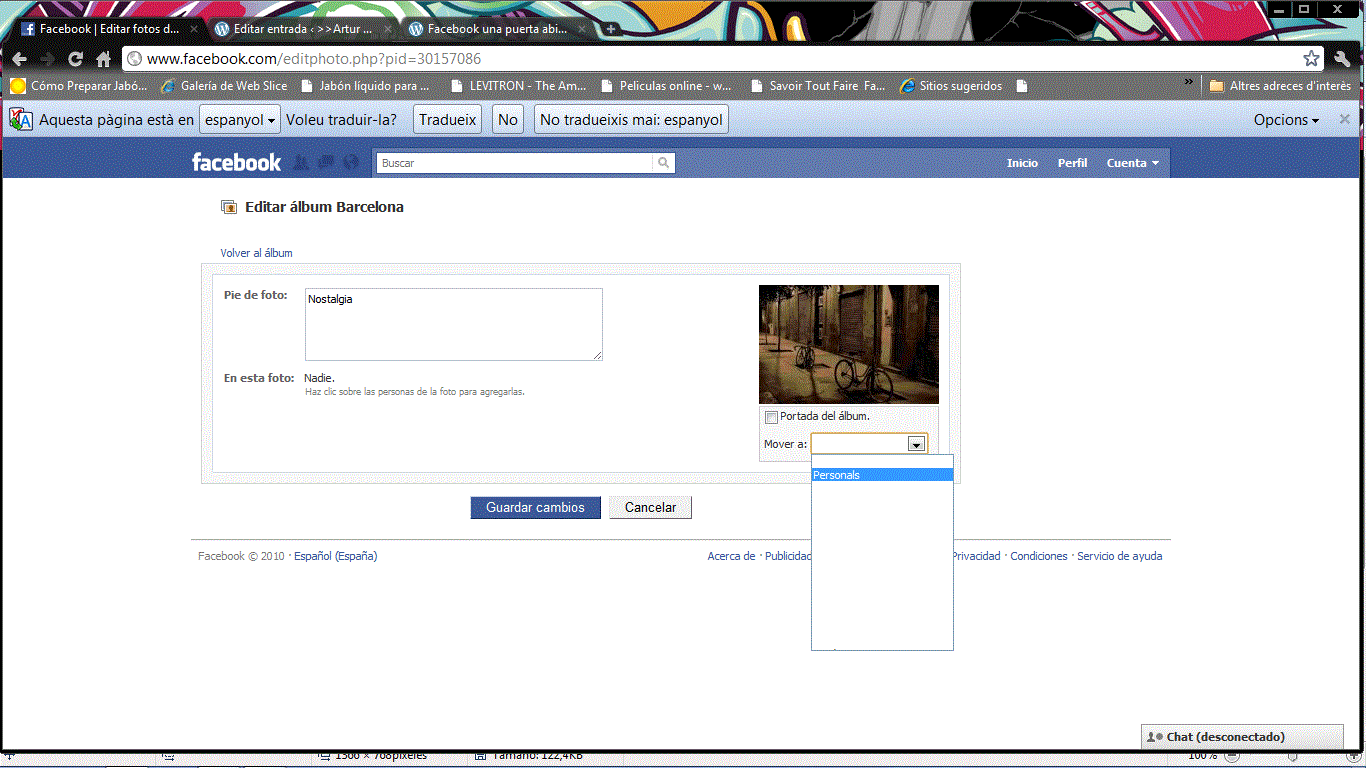 Una vez hecho esto, pasa las fotografías que quieras que solo vean esos usuarios a ese álbum. Para hacerlo, es muy sencillo, haz un click sobre la fotografía en cuestión (que no sea una foto de perfil ya que no funcionara) y luego pulsa sobre una opción situada debajo y a la derecha de la fotografía donde se indica ‘editar’ y la mueves como se indica en la siguiente imagen a el álbum que hemos creado anteriormente.