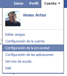 En primer lugar, tal y como se nos muestra en esta imagen, vamos al menú cuenta y luego pulsamos sobre configuración de la privacidad.