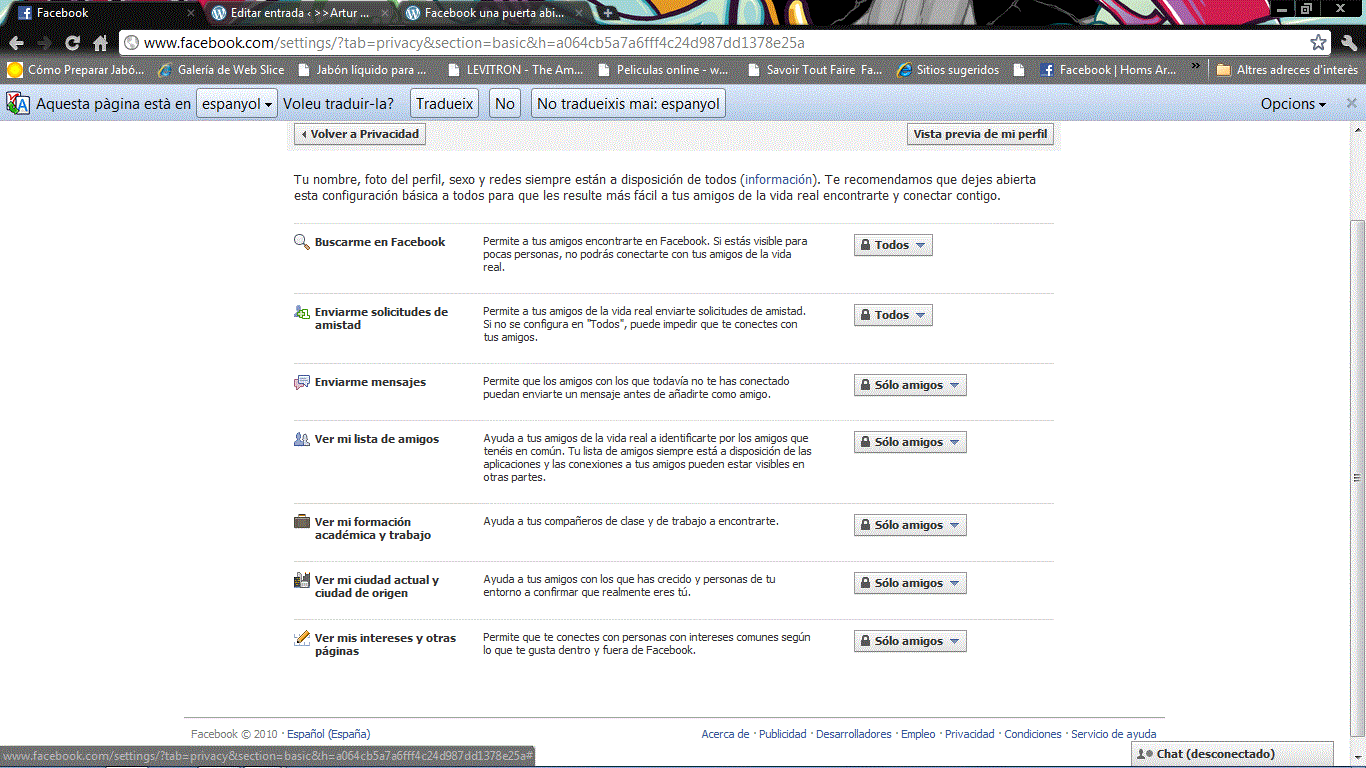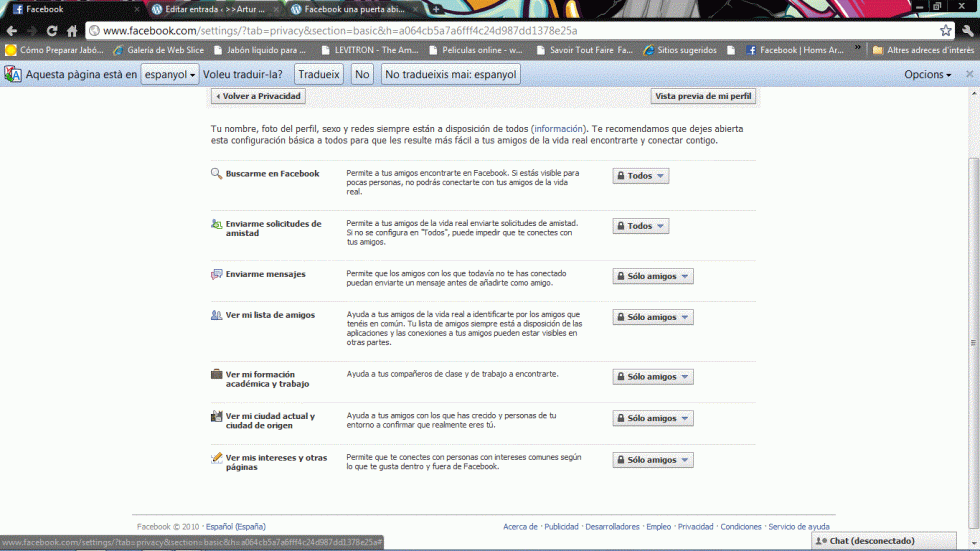 Por curiosidad vuelvo a entraren su perfil y para mi sorpresa continuo viendo sus fotografías. Como soy una persona que me preocupo por los demás le envío un mensaje y le comento que ajuste sus opciones de privacidad, cosa que aun no a hecho. Pues bien esto va para ella y para todos los que como ella no queráis que un extraño se inmiscuya en vuestra intimidad por el simple hecho de que es amigo de un amigo.