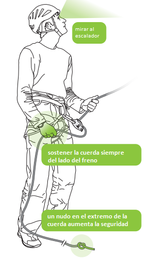 - Siempre debe mirar al escalador • Debe mantener la holgura justa de la cuerda