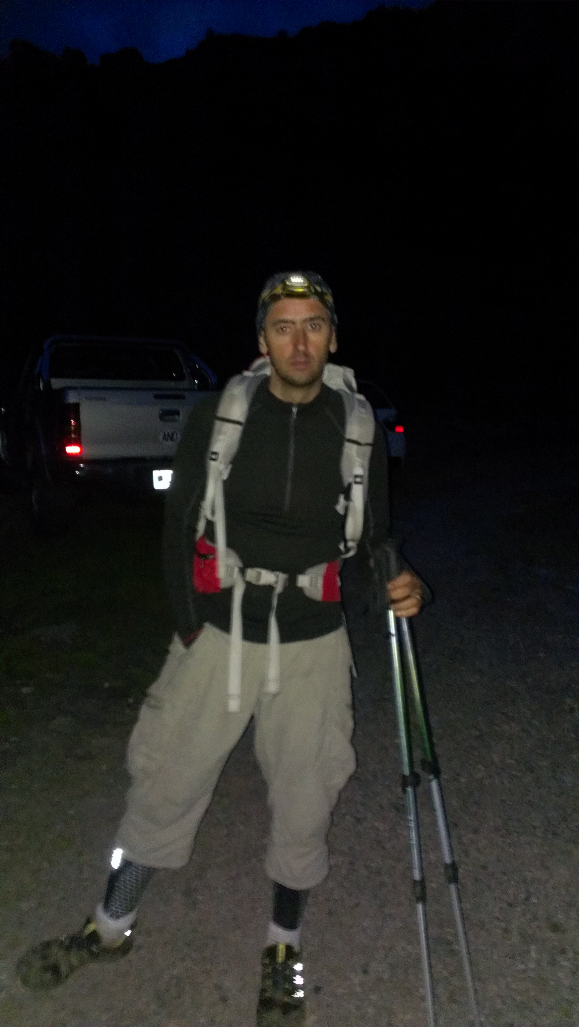 A las 3h30 de la madrugada del día 8 llegamos al collado de la Serrera, donde pasamos el ultimo control antes del refugio de Sorteny. Hace viento y frio, estamos a mas de 2500 metros de altura.