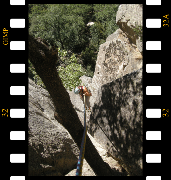 Esta vía se compone de varias fisuras y diedros. Es muy bonita y agradable, si vais en verano os recomiendo estar allí a las 8 de la mañana en punto ya que necesitareis como mínimo un total de 4 horas para completar todos los largos. Lamentablemente solo pudimos completar el primer largo ya que llegamos tarde y el sol crujía de valiente, a si que decidimos dar media vuelta en la segunda reunión. Tenéis un poco mas arriba varias zonas de deportiva con paredes en grados elevados.