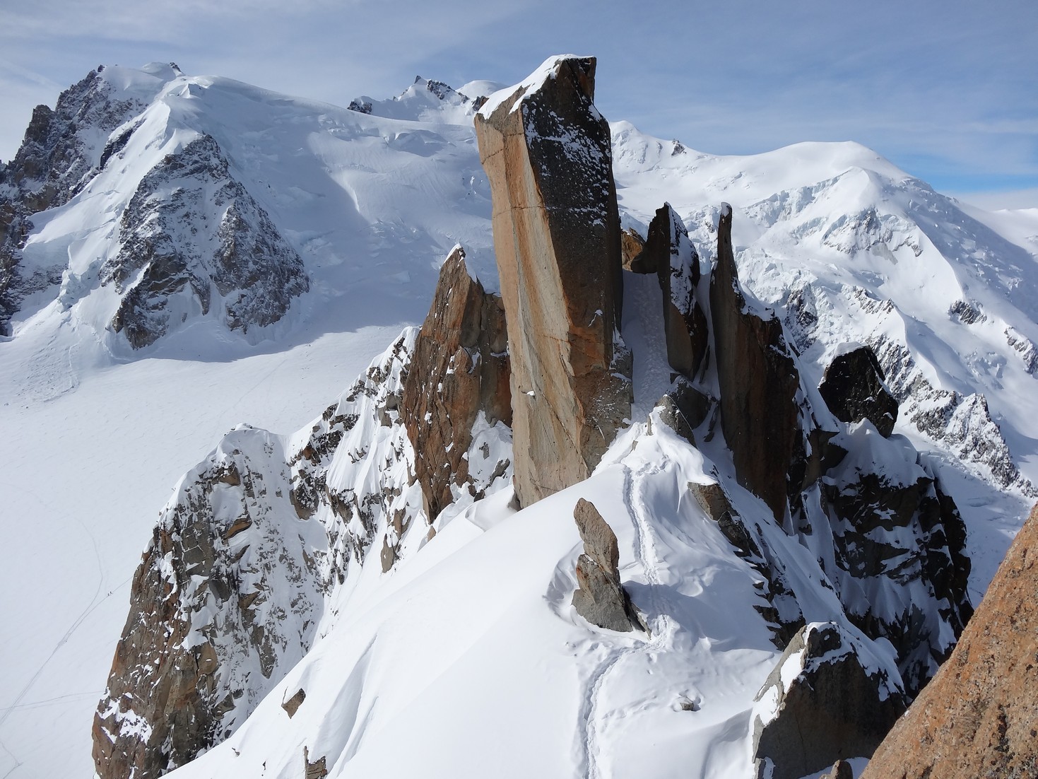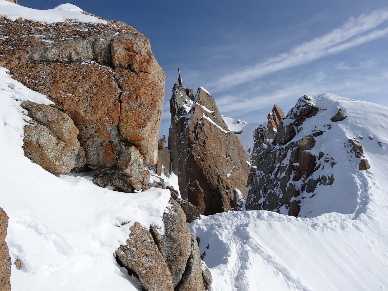 Una clásica: La arista de las Cósmicas en invierno. Chamonix, Arista de las Cosmicas o Arrête des Cosmiques.