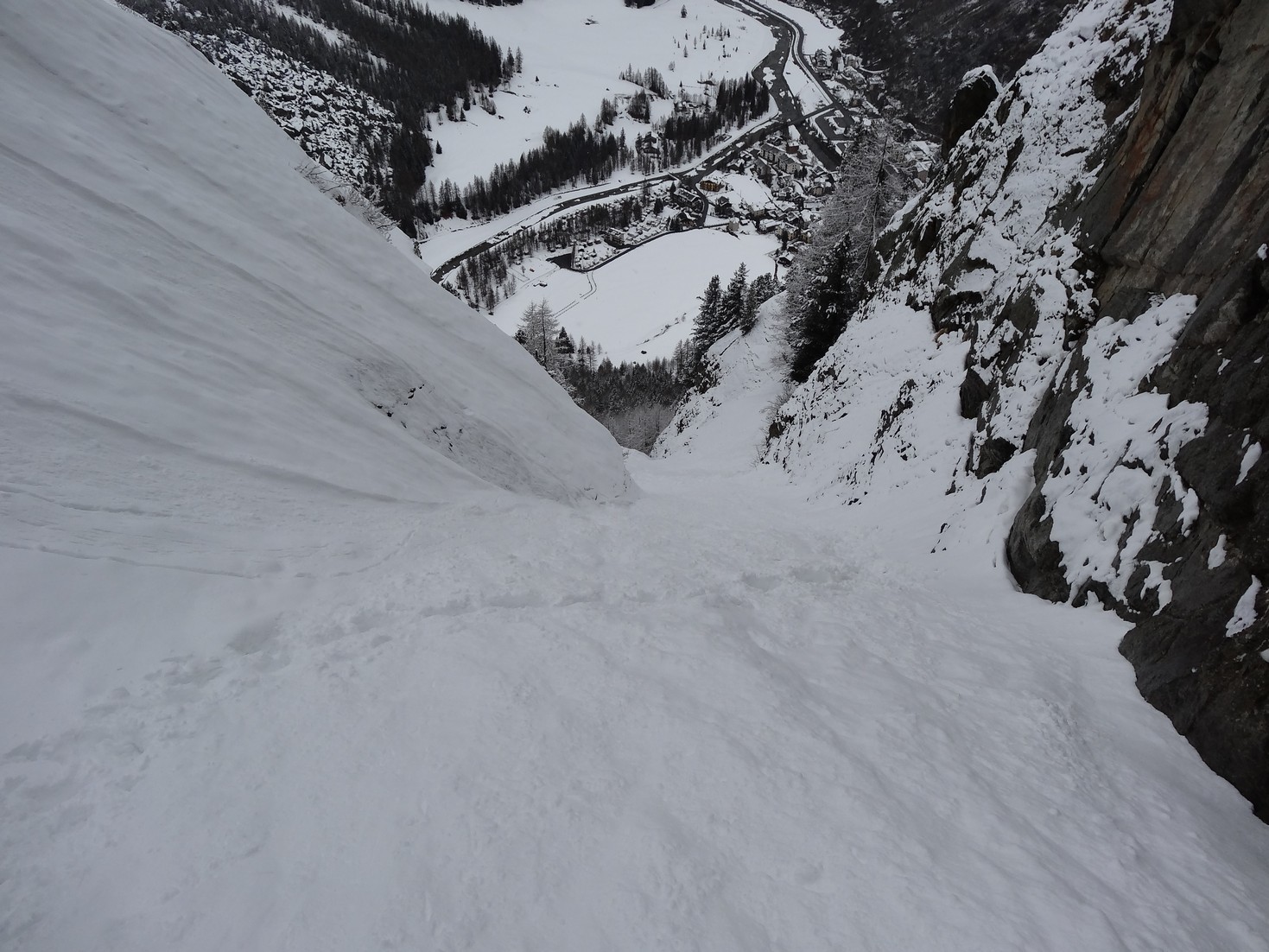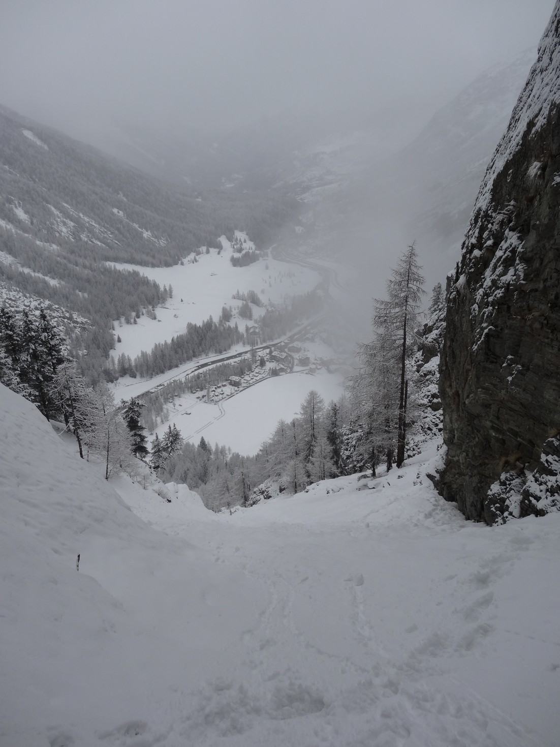 Para bajar tal y como salimos de espalda a ‘goulotte’, seguimos las marcas de camino en los aboles.