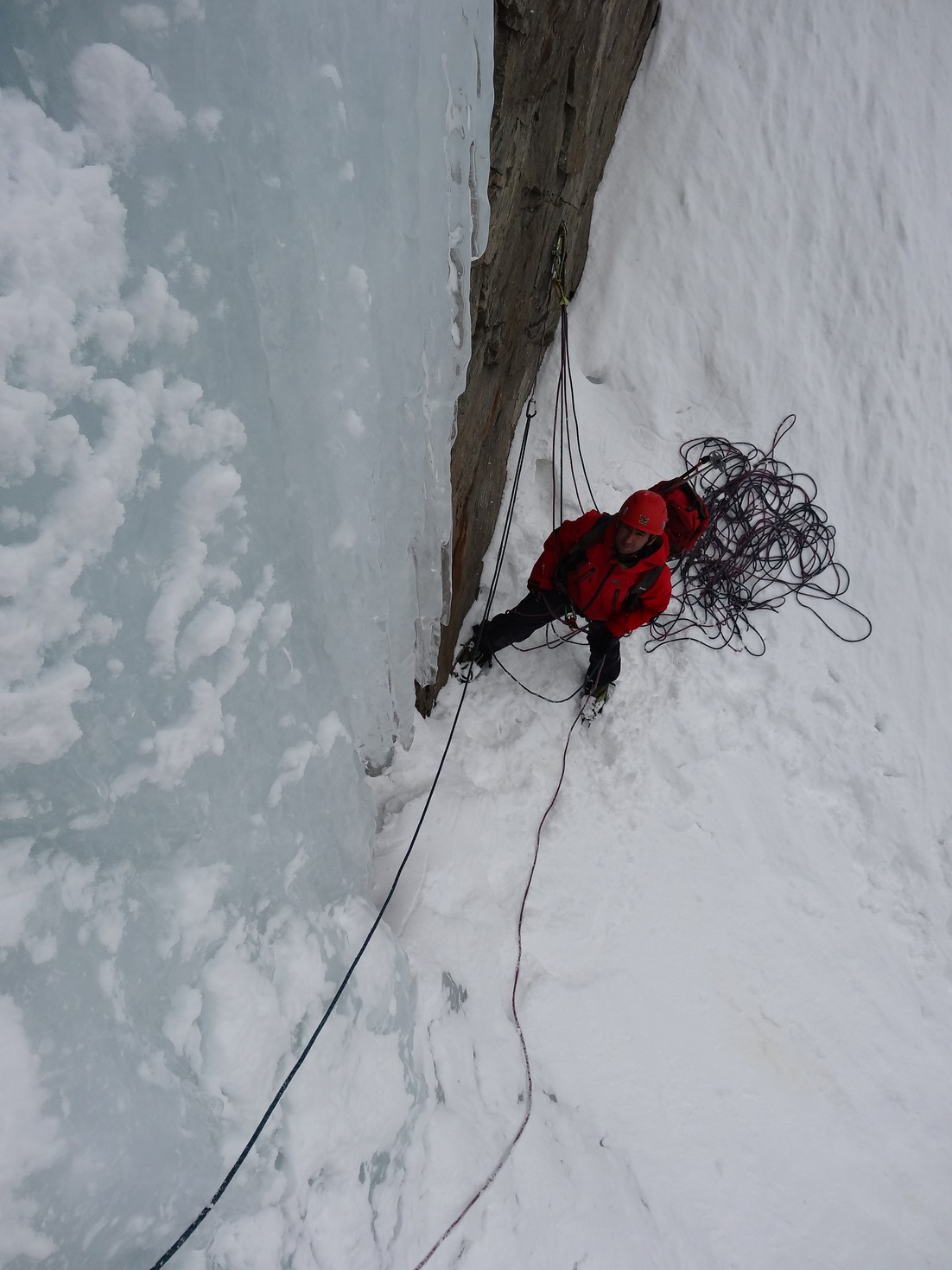 Se trata de una vía de 7 largos mixtos, de hielo piedra y fuertes pendientes de nieve por el corredor.