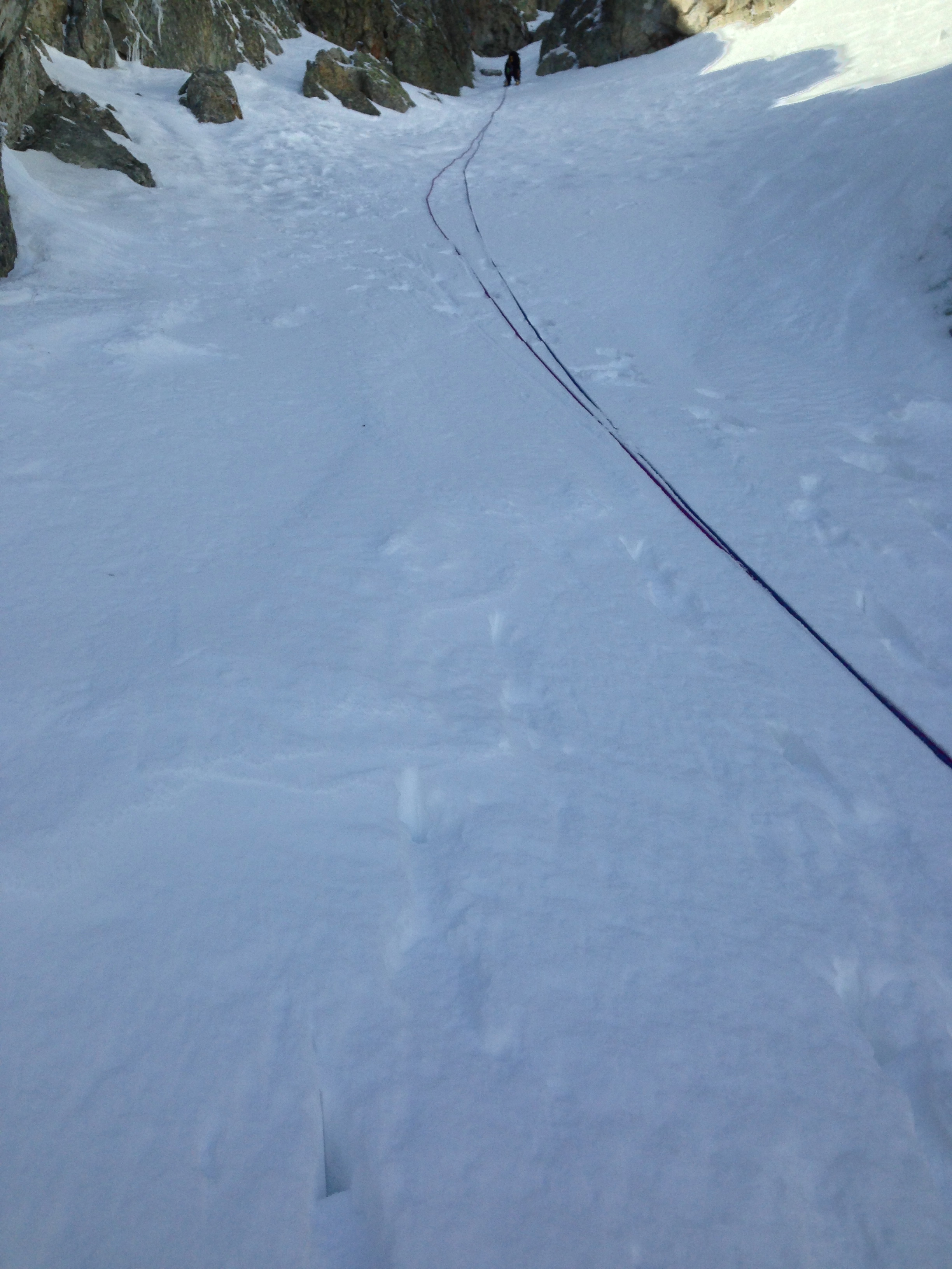 El corredor central del Bony de Envalira tiene una inclinación máxima de 55 grados, no es un corredor difícil, pero es un corredor, los riesgos existen y debéis realizar esta actividad con un experto o un guía de montaña.
