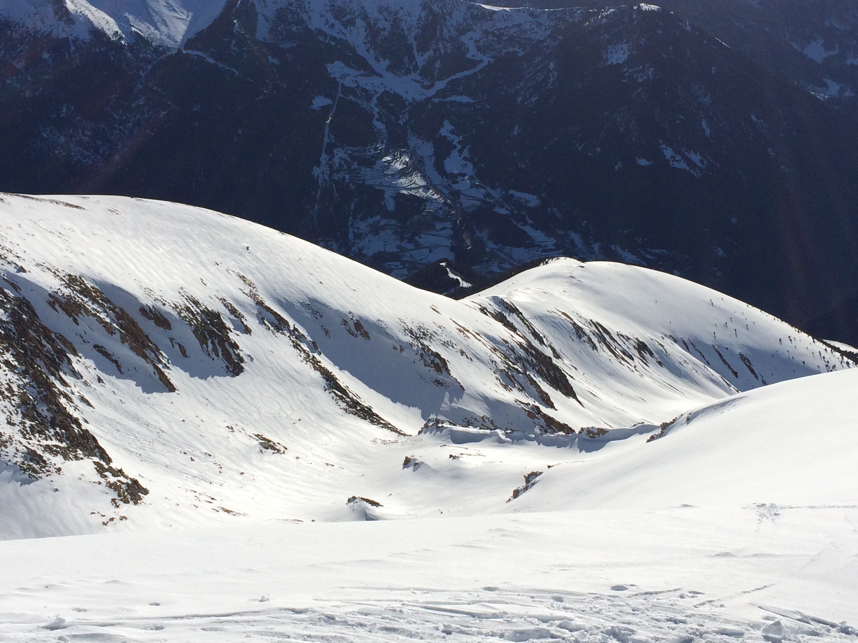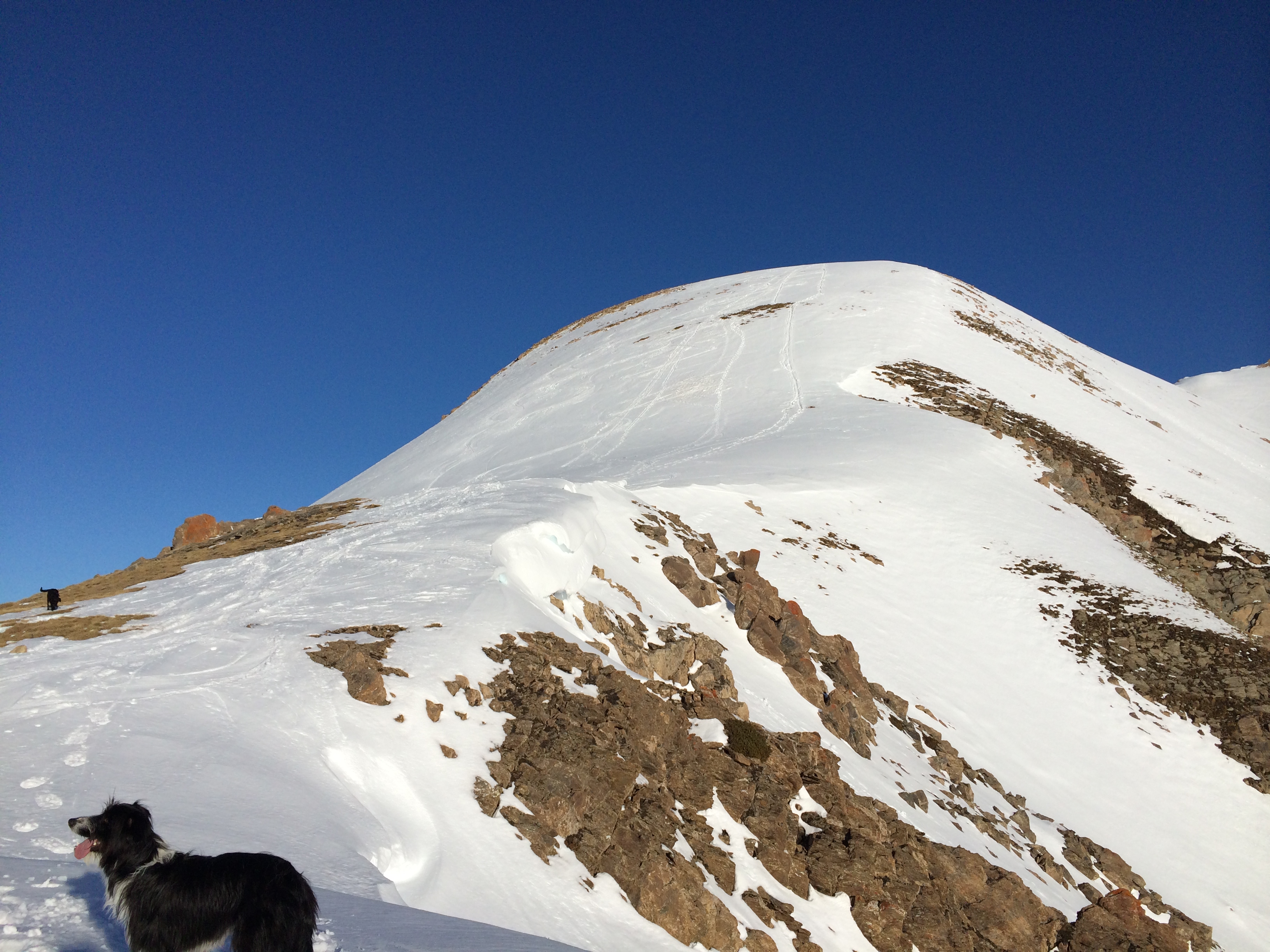 Casi llegando a la cima en la parte derecha podemos encontrar congestas de nieve que evitaremos a toda costa, ya que si cae alguna nosotros vamos detrás.