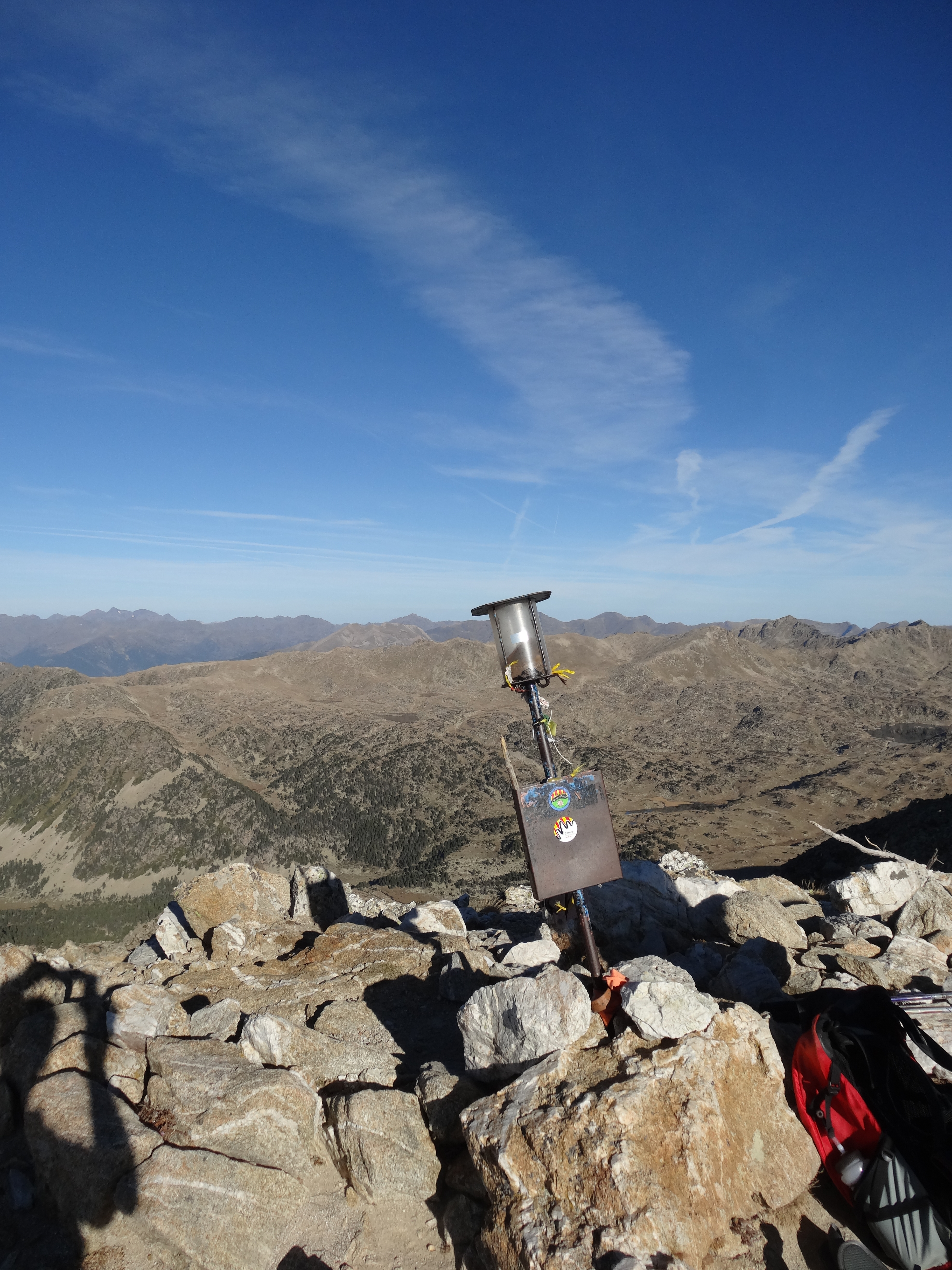 Las vistas desde aquí son impresionantes, detrás el Cadi, delante Andorra y el espectacular Valle del Madriu, desde allí se distingue muy bien el Refugio de l’Illa i el lago de l’Illa.
