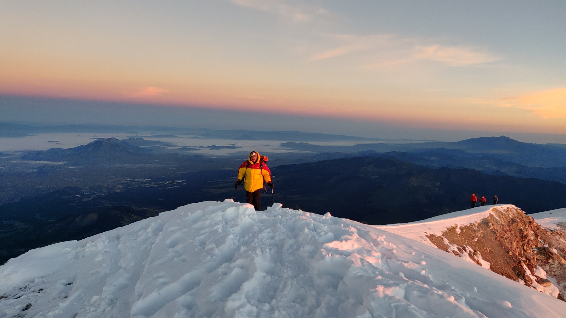 A medio lomo hacia la cima, Yuri me ayuda a sacar el piolet, que me ayuda a subir mas tranquilo entre algún paso con nieve mas dura.