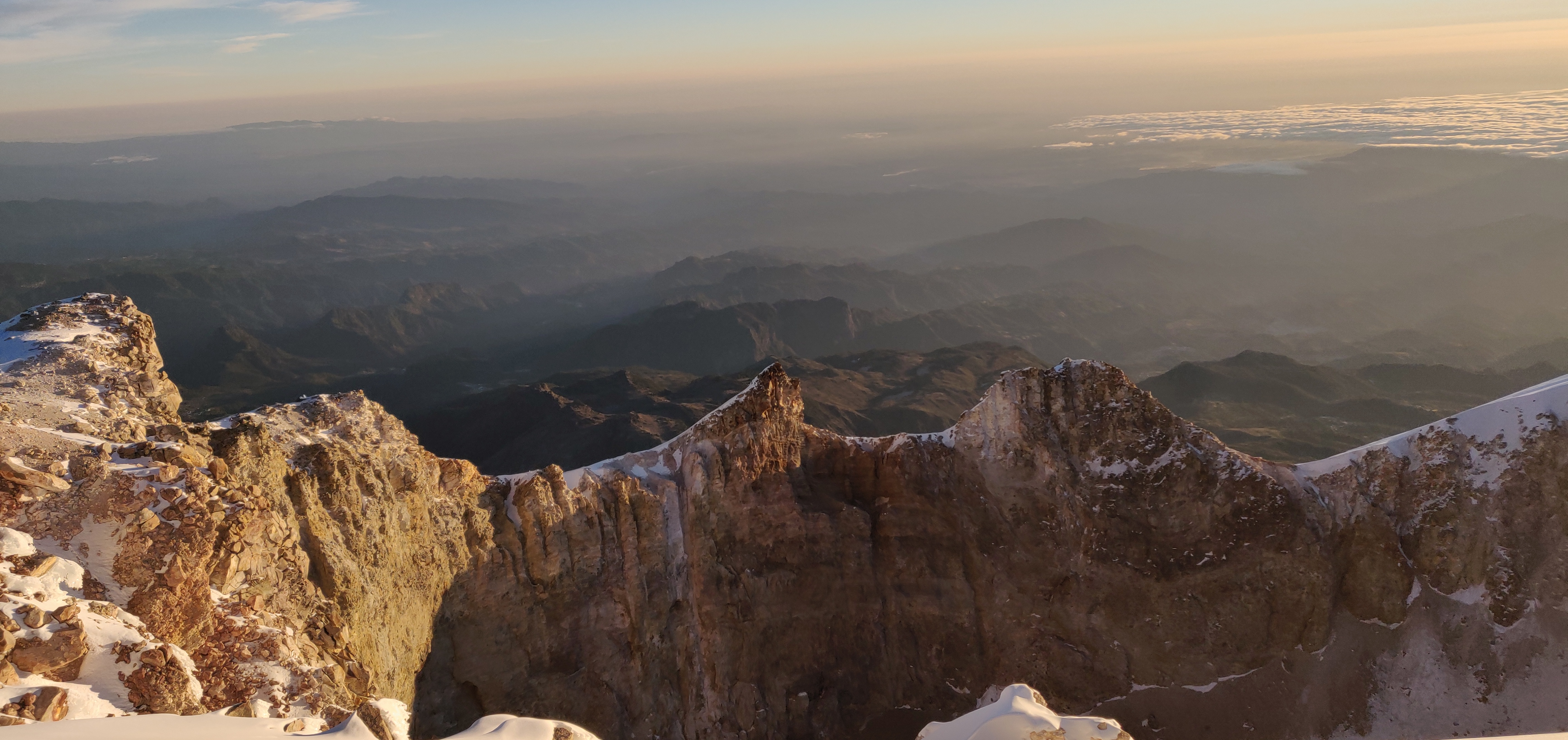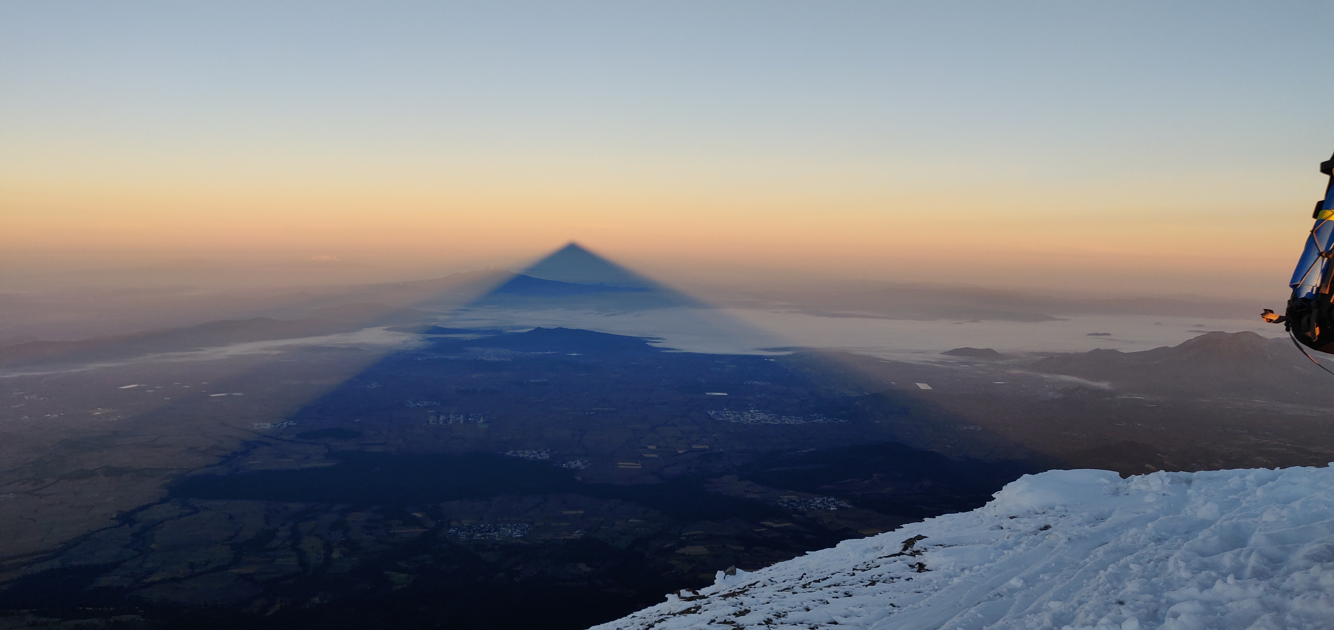 Reposamos, nos abrazamos, y disfrutamos de las vistas. Observando la forma en forma de pirámide que proyecta el pico de Orizaba sobre el altiplano mexicano.